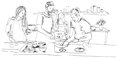 Your birthday is just around the corner or there is another reason to celebrate? Feel welcome to our top equipped event kitchen! You can rent and use the entire kitchen for a small fee. There you will find a large table and a lot of space to party.